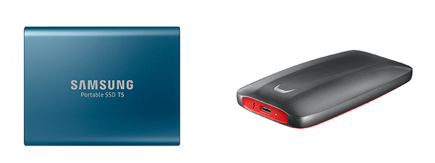 左から外付けポータブルSSD「T5」、Thunderbolt3ポートを搭載した「X5」