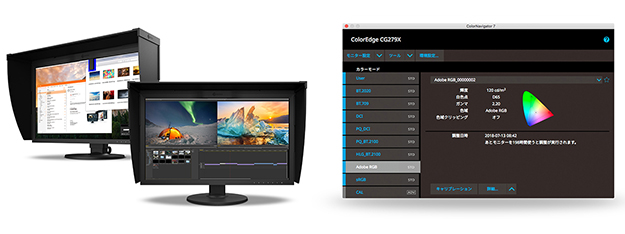 左から27.0型カラーマネージメント液晶モニター「ColorEdge CG279X」、新しくなったキャリブレーションソフトウェア「ColorNavigator」