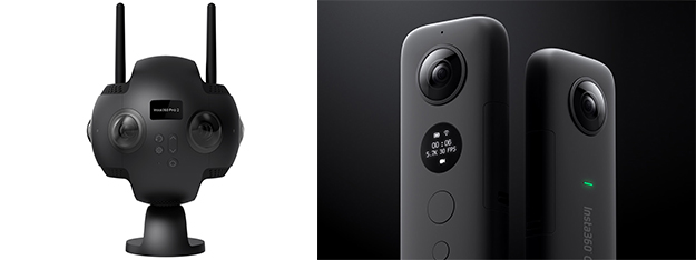 左からプロフェッショナル向け360°カメラ「Insta360 Pro2」、高画質360°カメラ「Insta360 ONE X」