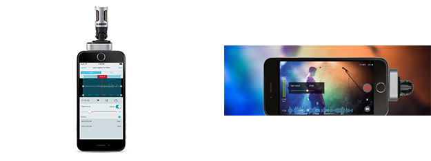 左からMOTIV MV88デジタルステレオコンデンサーマイクロホン「MV88」、動画撮影アプリ「ShurePlus MOTIV Video」