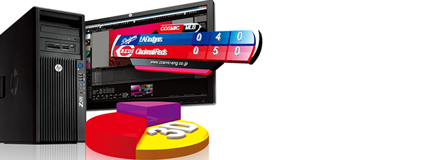 CoCo3D NDI連携オプションを展示。4レイヤー同時送出制御、多彩なアニメーションライブラリ、送出しながらその場で編集可能な汎用3Dキャラクタージェネレータ。CATV局、スポーツスタジアム・アリーナなどで高い導入シェアを誇るCoCo3Dシリーズに新たにNDI連携オプションが加わった。