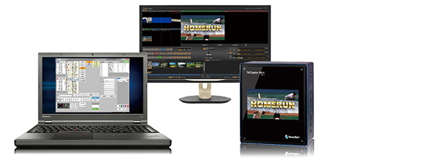 豊富なラインアップであらゆるスポーツ中継にグラフィックスを提供するスポーツコーダを、NDIに対応。Newtek社のプロダクションシステム「TriCaster Mini」とコンパクトなIPエンコーダを用いて、省スペースの制作環境を構成。スポーツコーダ用PCをネットワーク接続するだけで、手軽にスポーツグラフィックスの運用が可能になる。