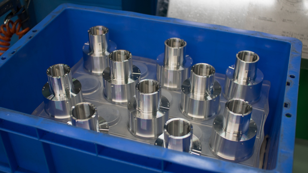 切削後のアルミパーツ。取材時にはまだ発表されていなかったシネレンズ「40mm T1.5 FF」のパーツが続々と作られていた