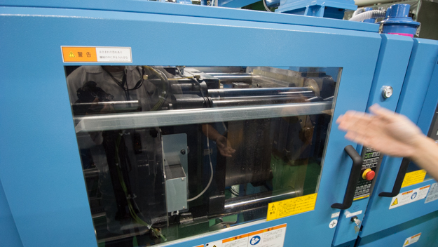 塑性加工部には、射出成形機が80台以上並んでいた。以前のシグマの交換レンズはプラスチック部品の使用点数が多い傾向にあったが、2012年にSGV(SIGMA GLOBAL VISION)を発表してからは、メタルの割合が多くなり、プラスチック部品は減ってきているという。