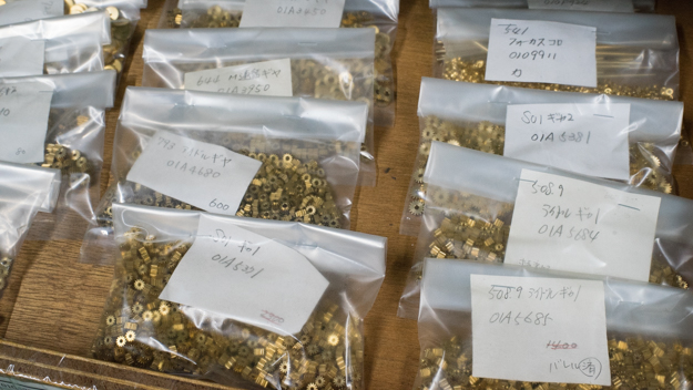 フォーカスコロやアイドルギアの小さなパーツ。こういった細かい部品も内製されている