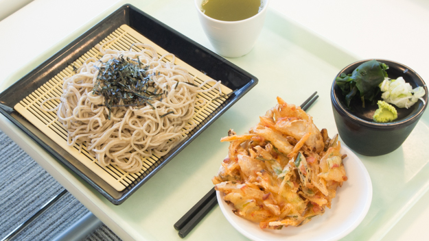 取材時には手打ちそばを注文してみた。そばも揚げ物も美味しい!