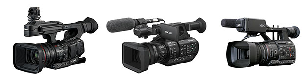左からキヤノンXF705、ソニーPXW-Z280、JVCケンウッドGY-HC550