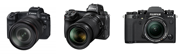 左からキヤノンEOS R、ニコンZ 7、富士フイルムXT-3