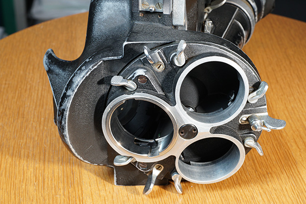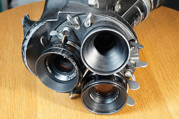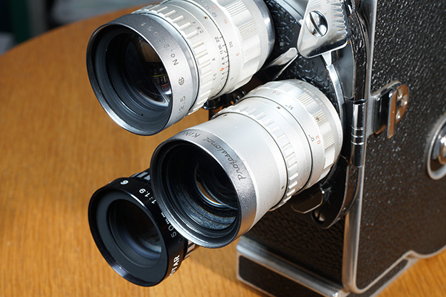 Cマウントレンズ3本が装着できる。日本製キノタール