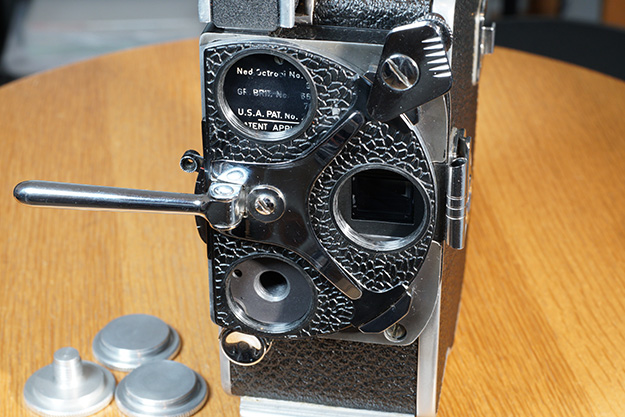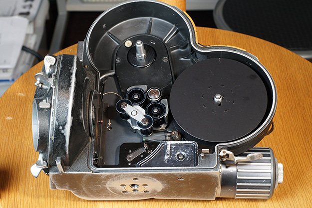 何とかレンズを揃え、バッテリーと電源コードを整備して、回してみます。カラカラと音がしてカメラが回ると「オオー!!」ですね。カメラをいじくりまわしているうちに気が付きます。