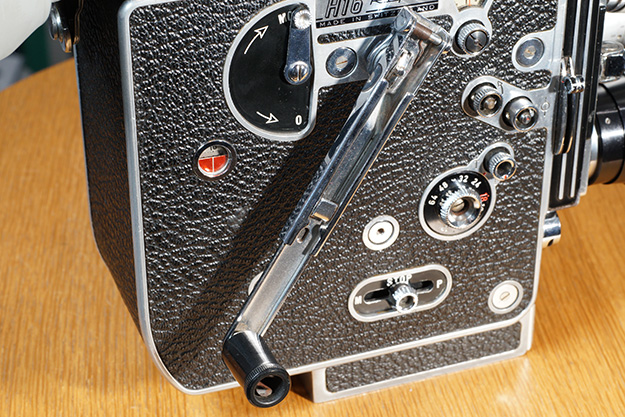 BOLEXはスプリング(ゼンマイ)駆動ですから、バッテリーは必要ありません。ただし、いっぱいにゼンマイを巻き上げても30秒しか撮影できません。