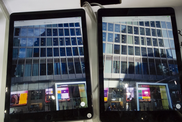 左が従来機種。右がTHETA Z1。表示しているのは部分拡大で、ビルの質感などが向上している