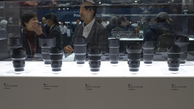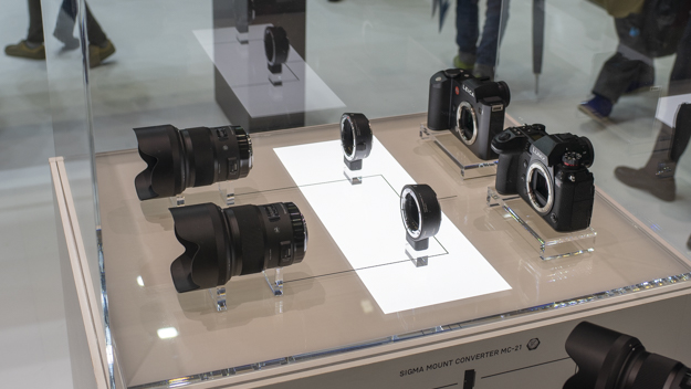 シグマブースで大々的に展示されていたのは、LマウントレンズとLマウントアダプターだ。Lマウントレンズのラインアップは、現在発売している14mmから135mmまでのArtラインレンズのフルサイズ用単焦点レンズ11本。発売日は未定。それと従来のSAマウントとキヤノンEFマウントからLマウントに変換するマウントアダプターの「MC-21」も展示されていた。