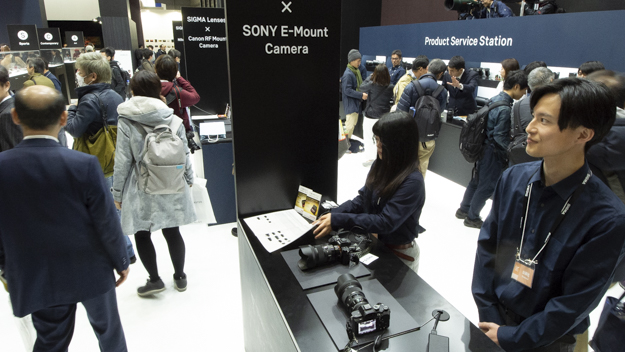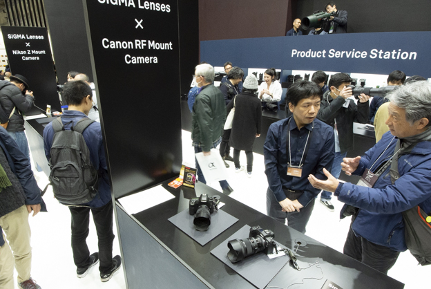 シグマは、これまで数々のニコンFマウントやキヤノンEFマウントのレンズを発売してきているが、最新ミラーレスカメラとレンズの互換性を確認できるタッチアンドトライコーナーが設けられていた。