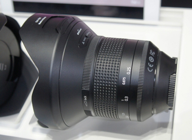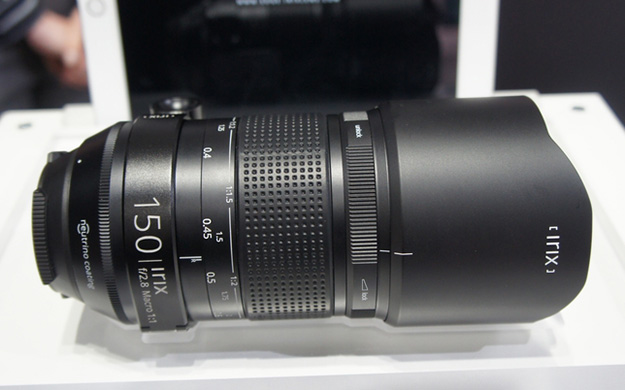 Irix Lens 11mm F4。スイスの新興レンズメーカーIrixは写真の11mmのほか15mm F4、150mm F2.8のレンズを出品。設計はスイスで製造はSamyang。フルサイズに対応しており、ニコンF、キヤノンEF、ペンタックスKのマウントタイプが用意されている