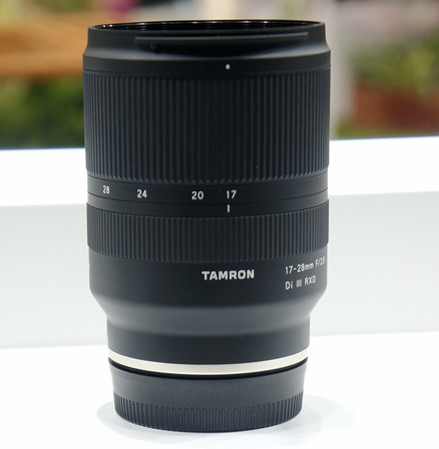参考出品のタムロンズームレンズ SP 17-28mm F2.8 DI III RXD。フルサイズミラーレス用の大口径広角ズームレンズ。小型軽量設計で幅広い撮影シーンに対応。2019年中頃発売予定。ソニーEマウント対応