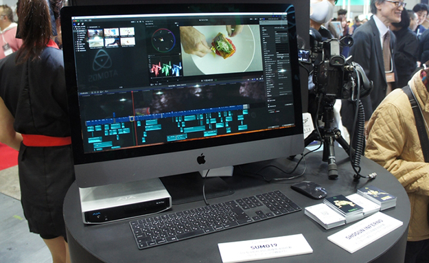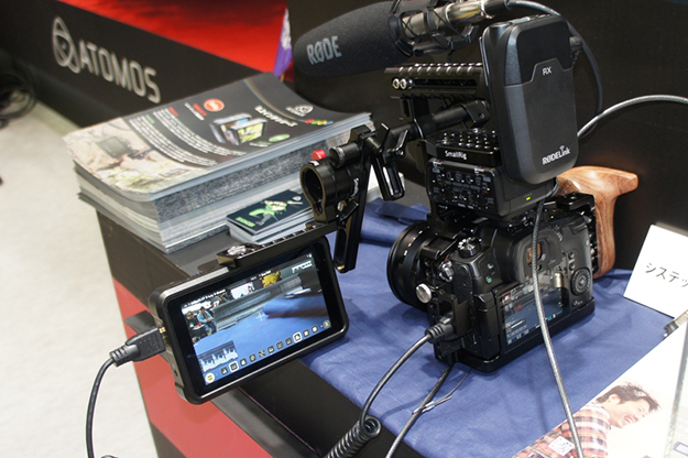 ProRes RAWはベイヤーパターンのセンサーから出力されるデーターをRGBなどに変換することなくそのまま収録できるもので、NINJA VのほかにもSHOGUN INFERNOやSUMO19なども対応している。会場ブース内にはRAW出力に対応したソニー、キヤノン、パナソニックなどのデジタルシネカメラとの組み合わせのほか、Final Cut Pro Xを使用したフィニッシングのデモが行われていた。
