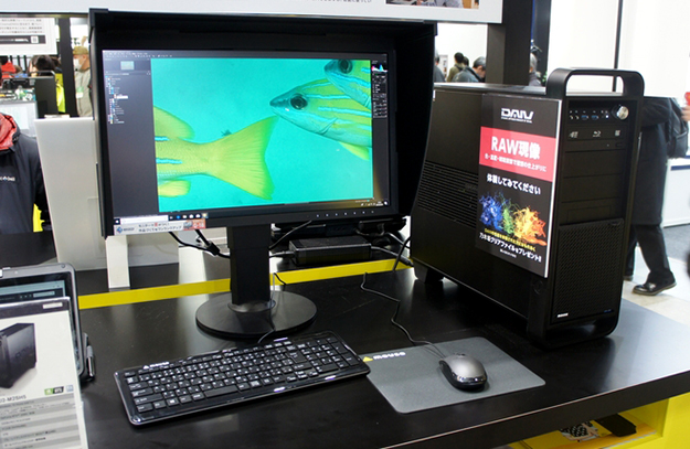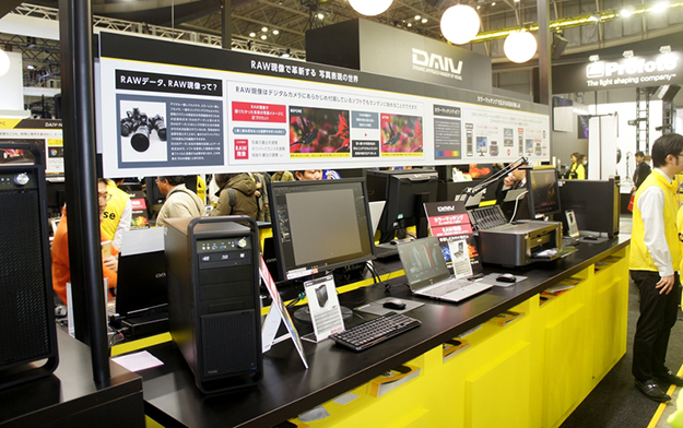 RAW現像やカラーマッチングの体験コーナー。ホワイトバランス調節やシャープネスの調節のほかサムネイルの表示などDAIVのパフォーマンスを体験できる