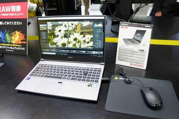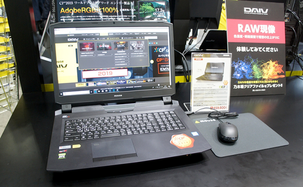 DAIVシリーズのノートPCは3モデル出展されており、エントリーモデルとして15.6型フルHD液晶を採用し、6コア12スレッドのインテルCore i7-8750H(2.2GHz/最大4.1GHz)プロセッサーを搭載したDAIV-NG5510H1-M2SH5。ミドルモデルとして15.6型フルHD液晶を搭載し、CPUにCore i7-8750H。グラフィックスにGeForce RTX 2060(6GB)を採用し、メモリーを32GB搭載したDAIV-NG5800U1-M2SH5がある。ハイエンドモデルは17.3型の4K液晶を採用し、CPUにデスクトップで使用されるインテルCore i9-9900K(3.6GHz/最大5GHz)プロセッサーを搭載し、グラフィックスにはGeForce RTX 2080(8GB)でメモリーは64GBを搭載したDAIV-NG7700U1-M2SS。