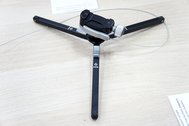 Really Right Stuff社の超小型三脚TFA-01 Ultra Pocket Pod。全長150mm、重量135gと小型ながら耐荷重は6.8kg。脚の角度は3段階に調節可能