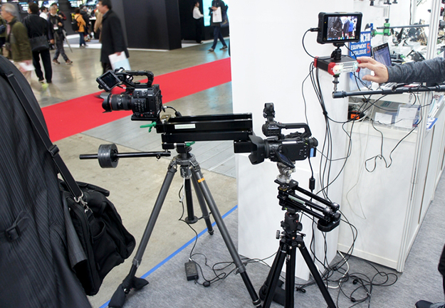 9.Solutions社のCパンカメラガイドアームとミニCパンアーム。ブームアップ・ダウン、スライドという直線的な動きだけではなく、ブーム+ティルト、スライド+パンなど曲線的なカメラ操作も可能