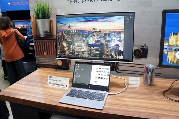 新発売としては24.1型ベーシックモデルColorEdge CS2410や、モニターと2月15日にバージョンアップされた写真プリントが簡単に色合わせできるソフトウェアQuick Color Matchのほか、参考出品としてUSB Type-CによりノートPCに給電できるモニターなどを展示。