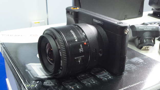 Yongnuoはカメラの開発も手がけており、ブースではスマートフォンにキヤノンEFマウントを搭載したYN450が展示されていた。