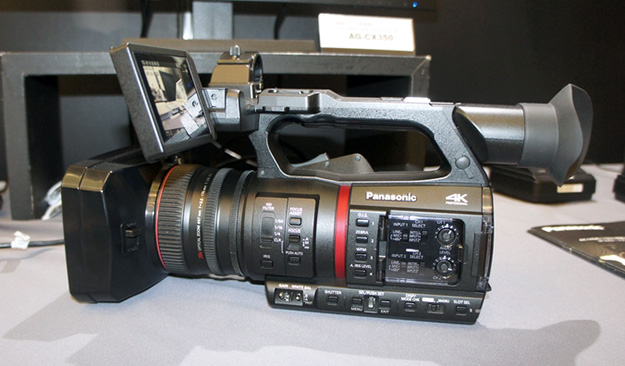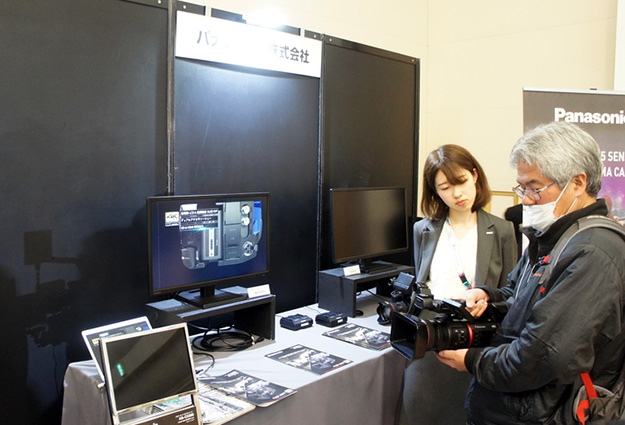 パナソニックは2月に発売となったばりの4K60P 10bit対応のフラッグシップモデルAG-CX350や、1月にアップデートされHEVCコーデックにおける4K/60P 10bit記録モードに対応したAU-EVA1などを出展。