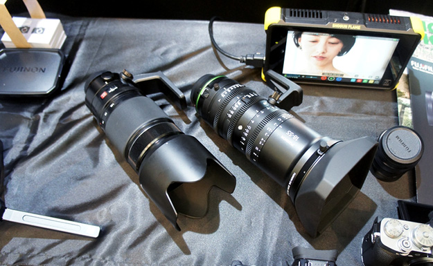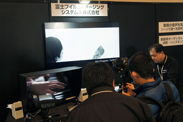 富士フイルムは4:2:0 10bitで4K60P収録に対応したデジタル一眼レフカメラやデジタルシネマ用レンズMKXシネマレンズなどを出展。デジタルシネマ用のX-T3は2月にファームウェアのアップデートが公開され、従来4GBを超える動画ファイルが分割して記録されていたものが、32GB以上のメモリーカードを使用した場合ファイルサイズが4GBを超えても1つの動画ファイルとして記録可能になった。