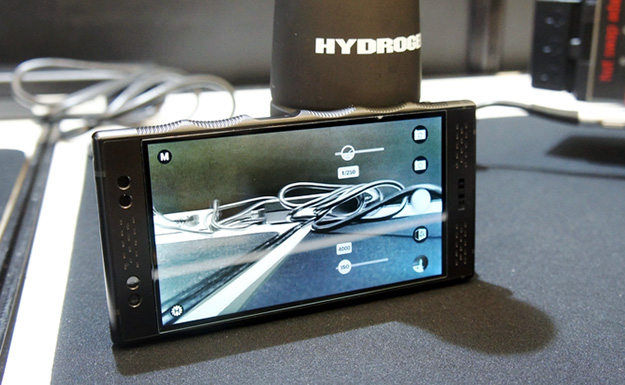 ホログラフィックディスプレイ搭載スマートフォンHydrogen One。昨年11月に発売された5.7型2K/WQHDディスプレイを搭載した裸眼3D視聴対応対応スマートフォン。モジュール式のカメラ部分を搭載しているほか、Hydrogen Networkアプリにより3D対応のコンテンツの視聴も可能なほか、Red Leia Loftアプリでゲームも可能