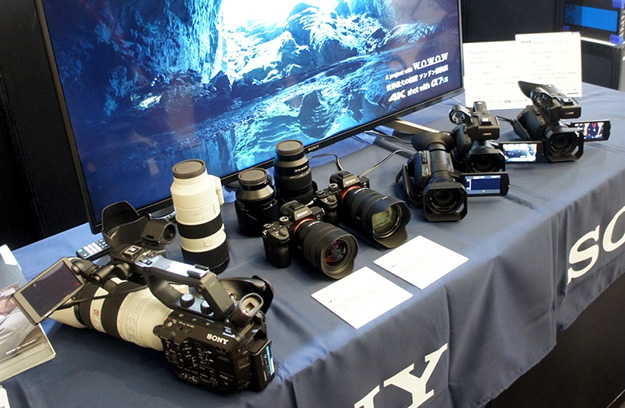 XDCAMメモリーカムコーダーPXW-FS7 IIや、4K60PハンディカムコーダーPXW-Z190、NXCAMメモリーカムコーダーPXW-Z90、フルサイズミラーレスカメラα7 III、レンズを展示