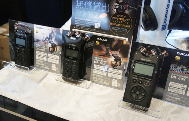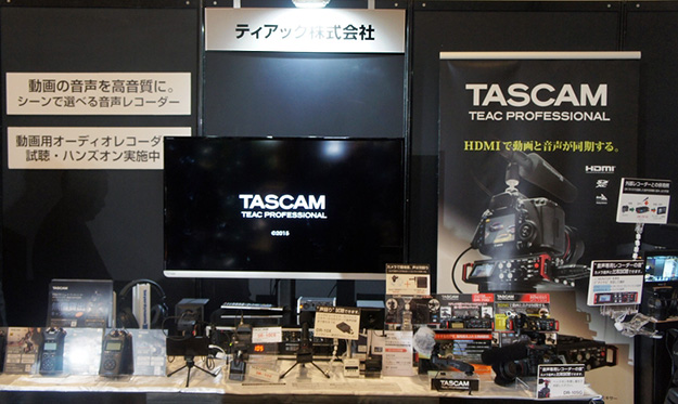 ティアックはUSBオーディオインターフェース対応ステレオオーディオレコーダーDR-Xシリーズや、HDMI同期が可能なレコーダーDR-701D、コンパクトで手軽に高音質収録ができるオーディオレコーダーDR-10シリーズなど、動画撮影に最適なオーディオレコーダーを出展した。