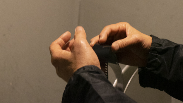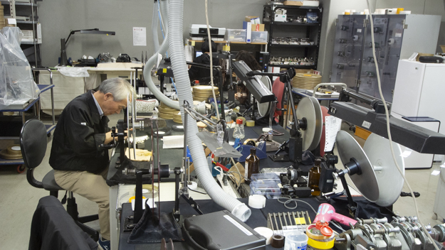 完全暗室での作業は、すべて指先の感覚で行う。関口氏はその様子を、「フィルムのトラブル確認は、完全暗室で何も見えない状態で行われるので、すべての感覚を研ぎ澄まして指先の感覚だけで行います」と語る。