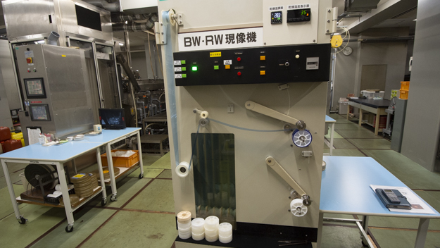 大阪のIMAGICA Lab.が拠点とする大阪プロダクションセンターは、一見普通のビルに見えるが、3階のフィルム現像機のあるフロアは異空間だ。扉を開けるとずらりとフロアいっぱいに並ぶ現像機の様子は、他のフロアとのギャップに面食らう感じだ。
