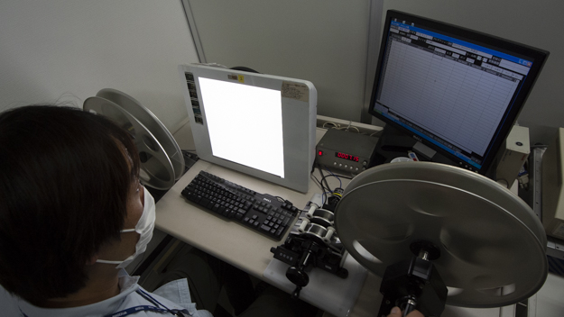 現像という工程は変動要素が多く、コントロールの維持が困難な作業だ。例えば、雨の日では乾燥や温度を変えるなど、天気によっても微妙に調整を変化させているという。IMAGICA Lab.では、濃度の変動のチェックを毎朝行うコントロールテストで行っている。また、フィルムタイプ別のランニング用フィルムを通して汚れの付着をチェックするランニングテストも行われている。