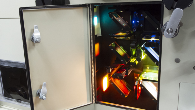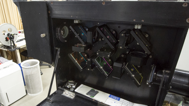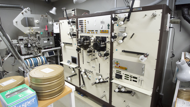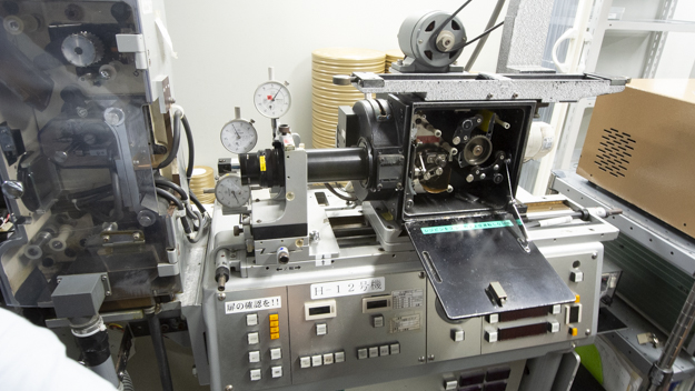 タイミングで色を決めたものは、プリンターで焼き付けを行う。プリンターとは、現像済みのフィルムを再度、別のフィルムに光学的に焼き付ける焼付機のことだ。明室タイプと暗室タイプの2種類あり、こちらは明室で主に35mmデュープネガを作成するもの。