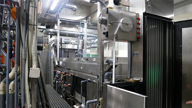 関口氏は、昔の現像機のオペレーションは人の感覚だけで整備や操作をしていたが、今は約半分がコンピューター制御で、残り半分が人の感覚で動かせると語る。「昔は温度を見ながら温水と冷水を混在させて、常にちょうど40°になるように常に現像機に張り付いて調整していました。今はコンピューター制御で温度が調整され、常に安定した現像コントロールを実現できるようになりました」という。