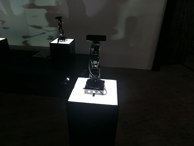 「Das Fremde」は、言語がどのように生まれ、発達・変化していくかをロボットと自律型プログラムを使って表現したインスタレーション。展示を通じて、違う言語や見た目を持つもの同士の交流は可能かディープランニングによって実現する。