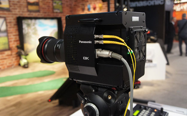 パナソニックのブースではツアー形式で出展製品の紹介を行ったが、その中でも特徴的だったのが8KマルチパーパスカメラAK-SHB800GJだ。この8Kカメラの映像から最大4つのHD映像を切り出し、それぞれに切り出したい位置やズーム操作ができるようになっており、1台のカメラで4台のHDカメラとして運用が可能なほか、AK-SHB800GJからの8K画像をHDとして使うことで、HDカメラ5台分の役割を果たすことができる。