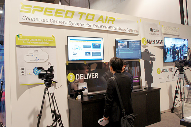 もう一つは、P2ワークフローソリューションP2 CastをAWS(Amazon Web Services)クラウド上で展開するサービスで、すでにAWS上でEDIUS Cloud(Grass Valley社)と連携したテスト運用を始めており、2019年内のサービスの提供開始に向けて準備を進めているというもので、放送用P2シリーズにおける新ワークフローソリューションP2 Cast on AWS(P2 Cast/AWS連携)として2019年内に提供開始する。