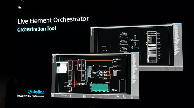 Live Element Orchestratorは複数機器の統合的な管理および監視を実現するソリューションでカメラと カメラリモコンの割り当てをはじめ、ビデオサーバーの入出力や4K/HDのシステム変更、HDR/SDRの設定、IP/SDIマトリクスルーターのクロスポイント一括設定など、従来個別に手動設定が必要だった作業や監視を一元的に行う事が可能