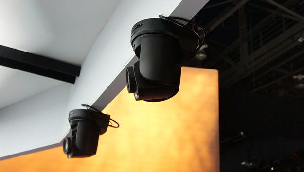 スタジオ正面上部に設置されたPTZ対応の4KカメラBRC-X1000