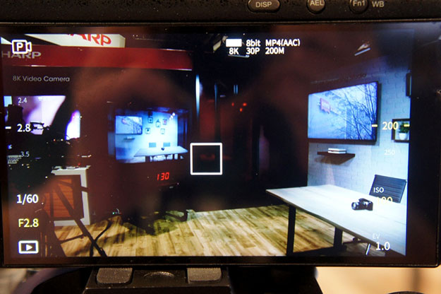 シャープはアストロデザインと共同開発で8C-B60Aという8Kカメラを発売しているが、今回シャープ独自開発の8Kカメラを披露した。このカメラは4月3日にマイクロフォーサーズシステム規格にシャープが賛同したと発表しており、レンズマウントはマイクロフォーサーズ規格となっている。センサーは3300万画素のCMOSセンサーで自社設計
