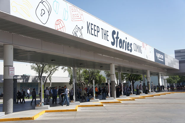 NAB3日目の今日は風が強く、通常なら視界が良く遠方まで見通せる界隈も周辺の砂漠からの砂埃の影響だろうか曇りがちであった。吊り広告のPOPも風で飛ばされたのか安全のために取り外したのだろうか、シャトルバス発着場通路に並んでいたBlackmagic Designの広告POPは全てなくなっていた。