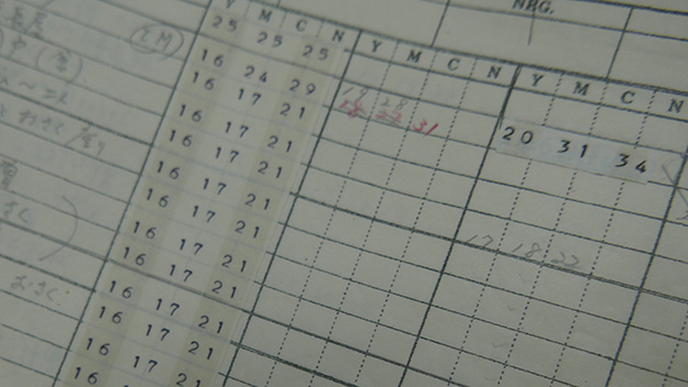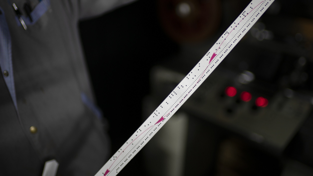 タイミングでカットに対して数値を決めたら、「何フィートから何フィートまではこの数値」という結果を紙テープにパンチして出力する。古いコンピューターでお馴染みの紙テープだが、現役で稼働中。紙であるために、長期間に渡る保存も特徴とのことだ。