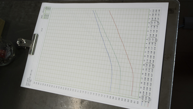 現像機は毎朝、21段ステップによる特性曲線のカーブやキズを確認するランニングテストを行い、問題がないことを確認してから本番作業を開始する。現像機は、薬品組成比率、現像時間、液温度が少しでも狂うと特性曲線のカーブが変化してしまう。分析スタッフは、長年の経験を活かして、特に気を使ってチェックしているとのことだ。