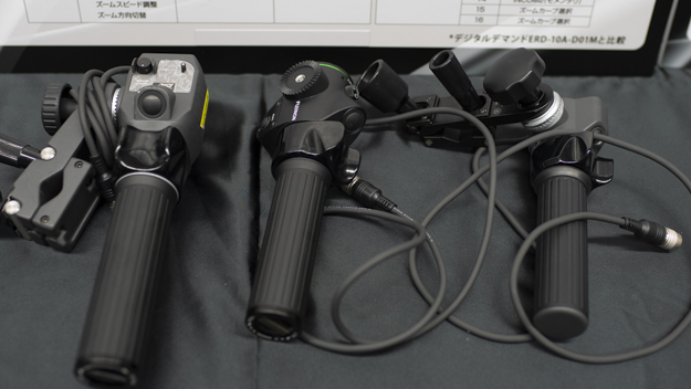 ズームデマンドの新製品も展示されていた。従来製品には小型で機能が少ない「ERD-10A-D01M」や、少し大ぶりで機能が多い「ERD-20A-A02」がラインナップされていたが、小型で多機能な「ERD-40A-D01」が登場。機能を増やして、防振のスイッチなども手元から操作可能にしている。