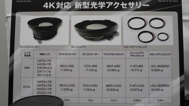 このほかにも、画質を考慮したワイコンやフィッシュアイ、クローズアップレンズなど、4K対応の新型光学アクセサリーの新製品も展示されていた。