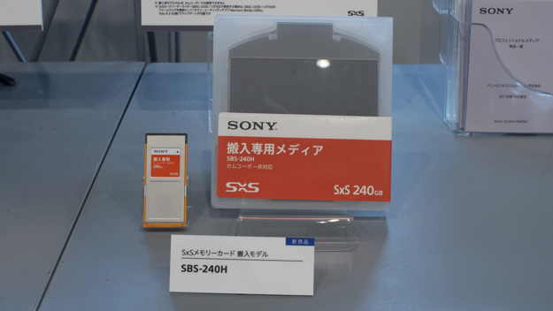 カムコーダーゾーンのメディアのコーナーでは、今年9月に240GBと120GBの2モデルを発売予定のSxS PRO Xが展示されていた。SxS PRO+からSxS PRO Xにモデルチェンジとなり、併売は行われない。専用のリーダー・ライターを同時に発売して、Thunderbolt 3のみの接続になる。