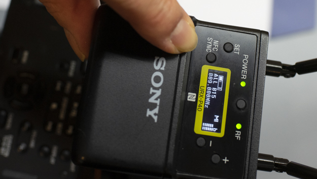 後継機の大きな特徴は、周波数の設定を簡単にし、取材の現場ですぐに撮影に取り掛かれる仕組みを実現しているところだ。現行機はメニューの中に入って周波数を設定していたが、後継機は「NFC SYNC」と呼ばれるボタンを搭載し、このボタンを押すだけで今いる空間で使える周波数を割り当ててくれる。さらに、割り当てられた周波数は送信機のほうにNマークとNマークを重ねるようにタッチすると、送信機に設定される仕組みになっている。